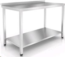 Стол с бортом, с полкой, подложка ДСП, столешница 40 мм. Нерж. сталь, сварная конструкция, профиль - труба 40х40.