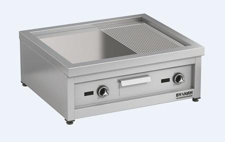 Настольная комбинированная ( ребристая/ гладкая) жарочная поверхность из стали общей толщиной 35мм, На поверхности- сливное отверстие для сбора жира, съёмный жиросборник. Рабочее поле: 630х580 мм. Благодаря специальному покрытию поверхность отлично противостоит коррозии и имеет хорошие антипригарные свойства. В зависимости от модели жарочная поверхность может иметь 1 или 2 зоны нагрева с независимым управлениемContent for class "cl" Goes Here