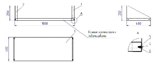 Полка-косынка сплошная 1000х400х250 ПС 10/4 завальцовка (Полка-косынка сплошная. Нерж. сталь, разборная конструкция.)Content for class "cl" Goes Here