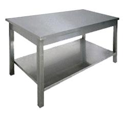 Стол без борта, с полкой, подложка ДСП, столешница 40 мм. Нерж. сталь, сварная конструкция, профиль - труба 40х40Content for class "cl" Goes Here