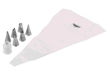 Комплект насадок 6 шт и мешок, нерж. сталь В комплект входят 6 насадок из нержавеющей стали, 1 мешочек для крема, 1 адаптер для крема.Content for class "cl" Goes Here