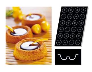 Форма для выпечки 60х40 см., на 24 шт., силикон Форма изготовлена из стекловолокна со специальным силиконовым пищевым покрытием, позволяющим готовить без смазывания жиром. Печенья легко вынимаются, форма быстро очищается. Возможно, как замораживать изделия в форме, так и выпекать в ней. Выдерживает разницу температур от -40 град. до +280 град.С Подходит для приготовления в микроволновой печи. Форму используют для выпечки пирожных саваренов. Саварен - традиционный пирог французской кухни. Готовят его в форме кольца из дрожжевого теста. После выпечки пропитывают сахарным сиропом с добавлением фруктовых или ягодных ликеров. В центр кольца укладывают взбитые сливки, цукаты или фрукты и ягоды, предварительно замоченные сиропе. Саварен был изобретен в начале 19 в. французскими кондитерами - братьями Жюльен.Content for class "cl" Goes Here