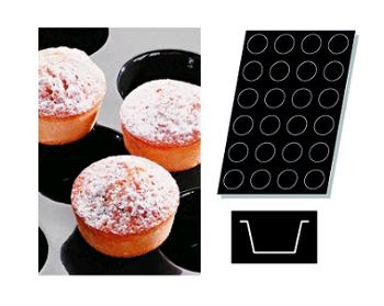 Форма для выпечки 60х40 см., на 24 шт., силикон Форма изготовлена из стекловолокна со специальным силиконовым пищевым покрытием, позволяющим готовить без смазывания жиром. Печенья легко вынимаются, форма быстро очищается. Возможно, как замораживать изделия в форме, так и выпекать в ней. Выдерживает разницу температур от -40 град. до +280 град.С Подходит для приготовления в микроволновой печи. Форма выемки - круг, ее используют для выпечки пирожного Маффин. Маффин маленькая круглая или овальная выпечка, преимущественно сладкая, в состав которой входят разнообразные начинки, в том числе фрукты. Обычно маффин поместится в ладони взрослого человека. Можно также выделить маффины, изготовленные из кукурузной муки. В маффин добавляются такие продукты как черника, шоколадная стружка, малина, корица, тыква, орехи, банан, апельсин, персик, земляника, морковь, лимон и т. д.Content for class "cl" Goes Here