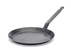 Сковорода для блинчиков 24 см., голубая сталь Эта лионская сковорода из листовой воронёной стали толщиной 2 мм обеспечивает отличное распределение тепла. Высокий выпуклый бортик в форме раструба. Необычная форма без резких углов позволяет легко перекладывать продукт из сковороды в тарелку или на блюдо. Ручка из штрипсовой стали прочно приклёпана к корпусу. Подходит для индукции.Content for class "cl" Goes Here