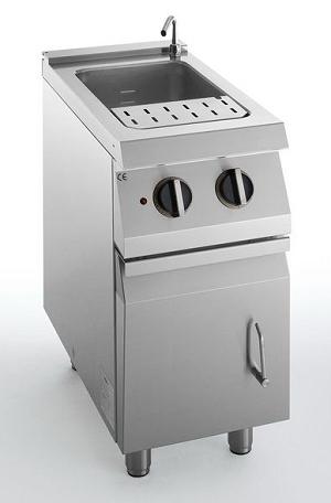 Электрическая макароноварка серии 700 SLPCE47CS предназначена для варки макаронных изделий. Столешница, вентиляционная решетка и передняя панель макароноварки выполнены из нержавеющей стали AISI 304. Толщина металла 2 мм. Ванна изготовлена из нержавеющей стали AISI 316. Количество ванн - 1, объемом 28 литров. Корзины в комплект поставки не входят. Предусмотрены краны для залива воды в ванну и слива воды. Новая трубка без крепежных элементов легко снимается. Регулировка мощности нагрева производится при помощи 4-позиционного переключателя. Нагревательные элементы выполнены из армированной нержавеющей стали. Данная модель укомплектована закрытой подставкой с регулируемыми ножками. Данную модель можно использовать как самостоятельно, так и в составе технологической линии.Аксессуары