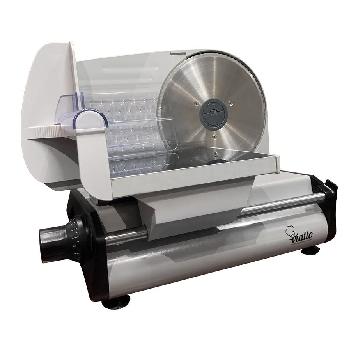 Слайсер VIATTO VA-MS2218 используется на предприятиях общественного питания и торговли. Профессиональная ломтерезка предназначена для нарезки мяса, сыра, колбасных изделий и других продуктов питания на ровные и равные ломтики. Модель оснащена съемной кареткой, значительно облегчающей процесс очистки, толкателем из прозрачного пластика и резиновыми ножками, предотвращающими скольжение. Прочный стальной острый режущий диск слайсера вращаясь с большой скоростью позволяет нарезать большие объемы продуктов, а регулировка щели между режущим диском и направляющей площадкой дает возможность получения ломтиков необходимой толщины. Электрическая ломтерезка существенно сократит время на подготовку холодных закусок и оптимизирует работку персонала. - Тип управления гастрономической машины: полуавтоматический. - Диаметр ножа: 220мм. - Толщина нарезки: 0-15 мм.